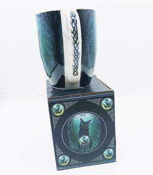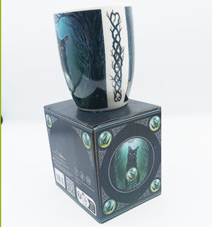 Magnifique tasse en porcelaine réalisée par Lisa Parker. Anse celtique. Tasse vendue dans son coffret.