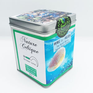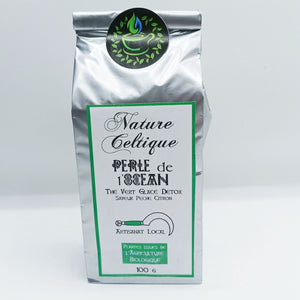 Thé vert*, citron*, pêche, ortie*, bleuets*, clitoria ternatea*, citronnelle*, menthe*, papaye, ananas, fleurs de calendula*, datte*, maté*, fève de cacao*, sucre fleur de coco*, arôme naturel.