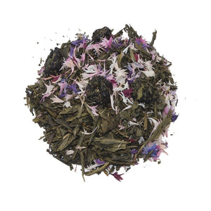Thé vert, arôme, cerise, et fleurs de bleuets.