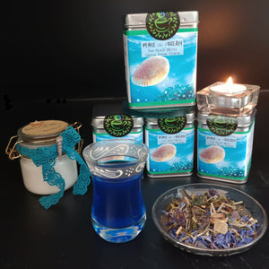 • La Clitoria Ternatea est une fleur magnifique qui va colorer naturellement le thé. Elle a des propriétés relaxantes et décontractantes. Elle aide à ralentir le vieillissement prématuré de la peau.