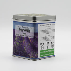 Plantain lancéolé*, fenouil*, fleurs de sureau*, mélisse*, camomille*, fleurs de tilleul*, gingembre*, eucalyptus*, ortie*, thym*, menthe poivrée*, lavande*, et verveine*.