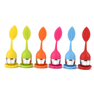 The ball is made of stainless steel. It is heavy enough to stay at the bottom of the tea cup. The colored part is made of food-grade silicone (BPA free). It ends in a leaf on its upper part, to allow it getting outside of the tea cup and catch the tea ball more easily.